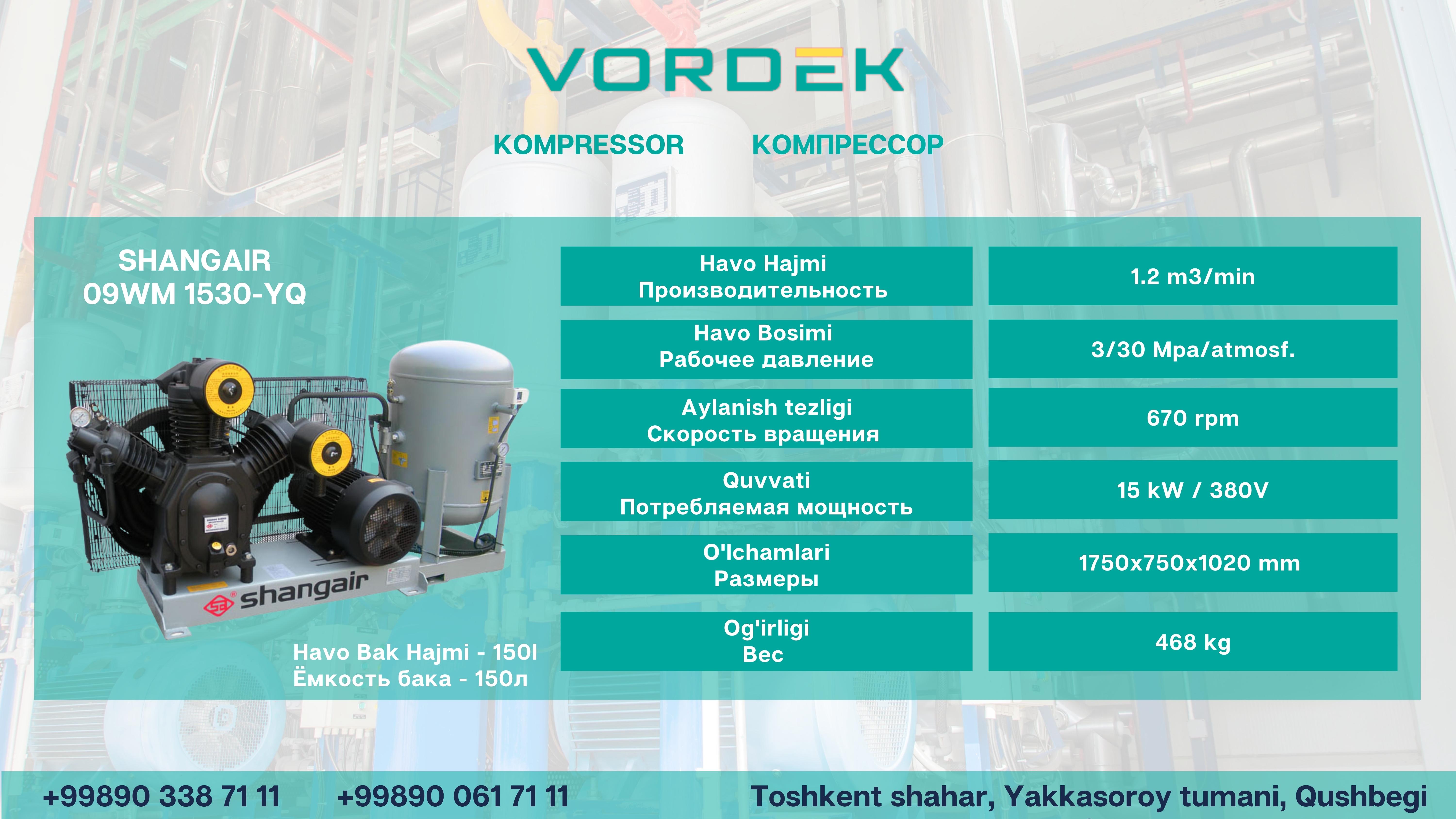 | Hajmi | 1.2 m3/min |